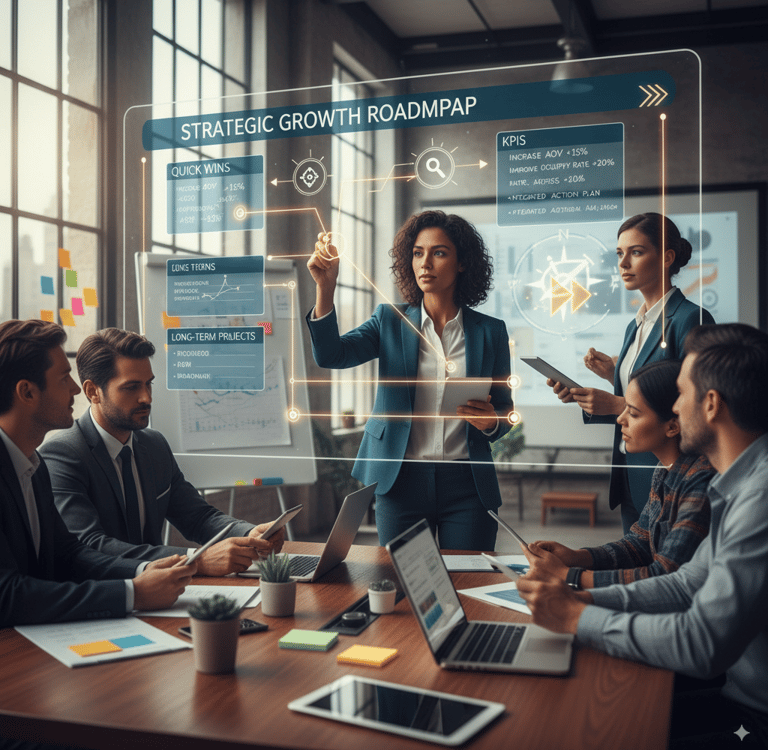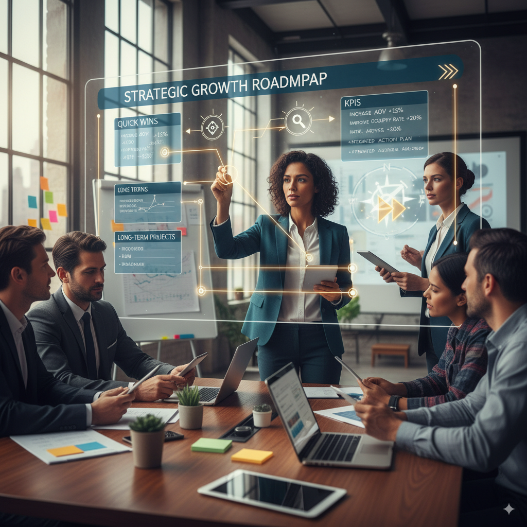 Con los datos del diagnóstico, traducimos los hallazgos en un plan de acción claro y priorizado. No se trata de hacerlo todo a la vez, sino de hacer lo correcto en el momento correcto.